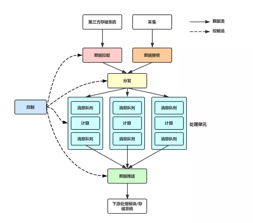 • 接入模块:包括数据拉取和数据接收,前者主动拉取数据,后者接收由上游模块推送的数据。